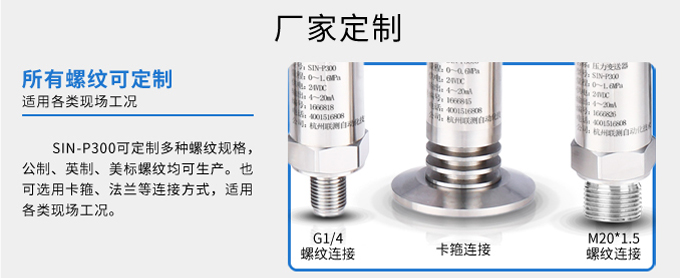 SIN-P300通用型壓力變送器德國進口硅芯片,精度高性能穩(wěn)定;SIN-P300型通用型壓力變送器采用擴散硅壓力芯體作為敏感元件,內(nèi)置處理電路將傳感器毫伏信號轉換成標準電壓﹑電流信號輸出,可直接與計算機、控制儀表﹑顯示儀表等相連。選用高穩(wěn)定性和高可靠性的壓阻式壓力傳感器和高性能的變送器專用電路,整體性能穩(wěn)定可靠,可進行遠距離信號傳輸。采用一體化全不銹鋼結構,經(jīng)過多次不銹鋼焊接,實現(xiàn)了全固態(tài)設計,安裝方便,具有高抗振性和抗擊性,在惡劣環(huán)境中可以長期使用。廣泛應用于工業(yè)自動化設備配套以及石油、化工、冶金、電力等控制領域。
