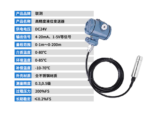SIN-P261投入式液位變送器由高性能擴散硅壓阻式壓力傳感器作為測量元件,把與液位深度成正比的液體靜壓力準確測量出來,并經(jīng)過信號調(diào)理電路轉(zhuǎn)換成標準(電流或電壓)信號輸出,建立起輸出信號與液體深度的線性對應(yīng)關(guān)系,實現(xiàn)對液體深度的測量。產(chǎn)品精度高、體積小,直接投入液體中,即可測量出變送器末端到液面的液體高度,使用方便。適用于石油、化工、電廠、城市供水、水文勘探領(lǐng)域的液位測量與控制。經(jīng)過長期老化及穩(wěn)定性篩選,產(chǎn)品性能穩(wěn)定可靠,能夠適用應(yīng)用于環(huán)境比較惡劣的露天現(xiàn)場,同時能夠現(xiàn)場液位顯示,零點,滿程可遷移。