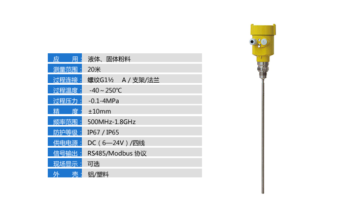 聯測SIN-RD701導波雷達是基于時間行程原理的測量儀表,雷達波以光速運行,運行時間可以通過電子部件被轉換成物位信號。