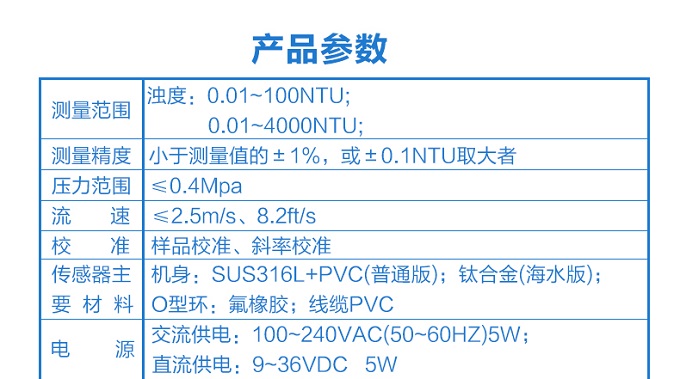 SIN-PTU200在線濁度分析儀內置微處理器,配置先進,功能強大,是非常精密的濁度測量儀,基于880nm的紅外線光源透過光學透鏡并穿透樣品液,按ISO7027標準測90°方向的散射光原理,此濁度分析儀可使用在不同地方的過濾裝置上測量原水或純凈水的濁度,如飲用水,各種生產和工業用水,以及任何需要使用合格水的地方。