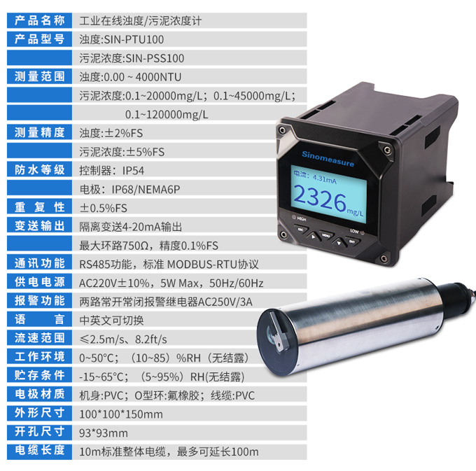 SIN-PTU100在線濁度檢測儀是一款智能在線化學(xué)分析儀器之一,基于組合紅外吸收散射光線法的原理,應(yīng)用ISO7027方法可以連續(xù)并精確地測定濁度或污泥濃度。